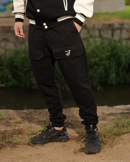 Możesz ich nawet nie zauważyć za pierwszym razem, ale one tam są. Haftowane logówki, które przywołują czasy klasycznych rapowych mixtape’ów. Solidne szwy, które nie pękają w połowie dnia. I ten materiał – gruby, ale oddychający. Leży jak trzeba, trzyma fason, nie wisi bez sensu. Można się w nich zginać, siadać, robić triki na desce, przeskakiwać przez barierki albo po prostu rozłożyć się na trawie przy boomboxie.